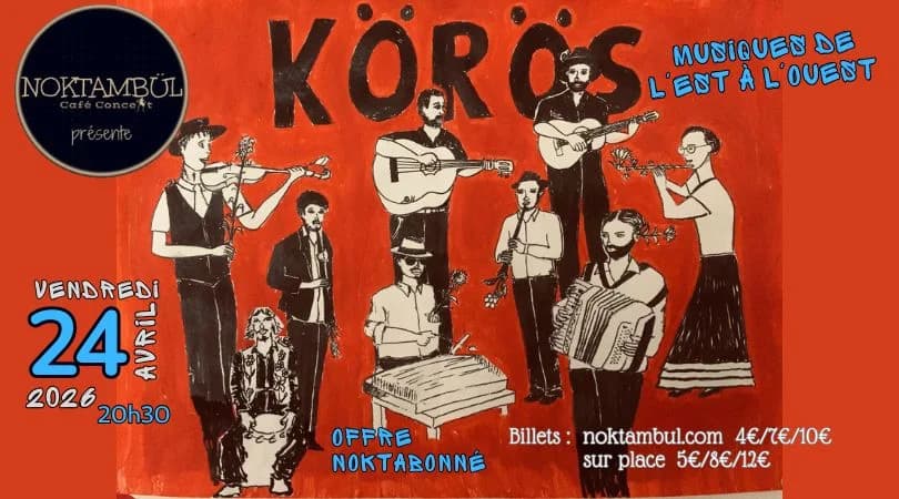 KÖRÖS, un groupe de musiciens passionnés, vous invite à une soirée de musiques de l'Est, tziganes et des Balkans. Laissez-vous emporter par une rivière de notes entraînantes qui promet danse et virevoltes.