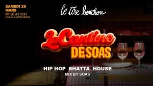 La Cantine de Soas transforme ton restau préféré en club pour une soirée! Attends-toi à une ambiance intimiste entre copains avec du Hip-hop, Shatta et House, le tout mixé par SOAS. Les plats en format Finger Food sont à volonté.