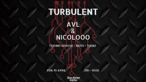 Nicolooo et AVL vous invitent à une soirée TURBULENT, mêlant rave et esthétique underground. Attendez-vous à un son brut, des lumières minimalistes et une ambiance sombre et hypnotique. Les deux DJs rennais vous feront voyager entre Down Tempo, Techno Groovy, Techno Indus et Tekno.
